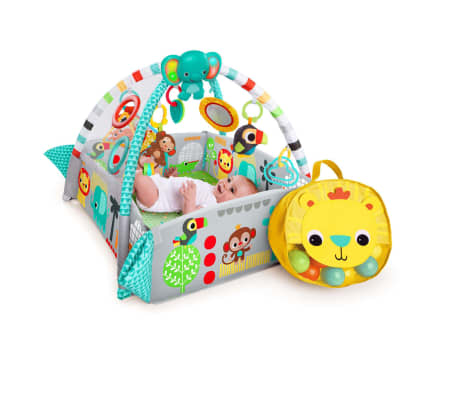 A diversão vem em primeiro lugar! Este ginásio de atividades não é como os outros! O ginásio de atividades Your Way Ball Play 5-em-1 da Bright Starts tem um tapete de 48" (122 cm) e um ginásio de atividades com paredes ajustáveis para cima e para baixo.