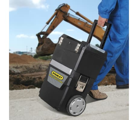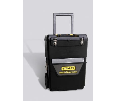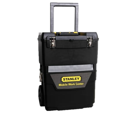 Stanley produziu uma estação de trabalho móvel 2-em-1 que separa em segundos em 2 unidades. O Stanley 193.968 tem uma caixa de ferramenta extra grande com bandeja removível que maximiza a utilidade de volume e uma capacidade de compartimento gigante. Esta caixa de ferramentas móvel Stanley tem muitas características em armazenar e dá ao usuário uma qualidade superior em armazenamento de ferramentas com a sua gaveta frontal giratória (carrossel) e os organizadores com tampa para peças pequenas, grandes rodas de camionagem para as condições do local áspero, a pega plástica forte nova, caixa de ferramenta tuda banhada em níquel e travas laterais com uma capacidade de carga de 40 kg de obter um bom conjunto de ferramentas ao seu lado. O Stanley 193.968 convenientemente se encaixa em seu carro ou camionete, e é durável e forte. Apresenta uma caixa de ferramenta extra grande com bandeja removível e um compartimento inferior gigante para guardar itens volumosos. . A swivel front drawer (carousel), and lid organizers are ideal for storing small parts. Rodas grandes garantem uma mobilidade suave em superfícies ásperas. A alça é durável de uma peça de construção de plástico. Ele tem características em banhado em níquel e travas laterais. Ele é durável, forte e fácil de operar.