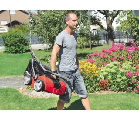 O dispositivo tem uma caixa resistente feita de plástico de alta qualidade, resistente ao choque. Graças à sua calha guia dobrável, o escarificador não ocupa muito espaço de armazenamento. Este dispositivo é recomendado para relvados até 500 m².