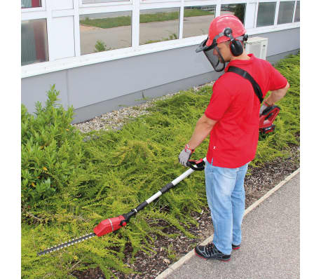 A alça telescópica infinitamente ajustável permite ser ajustada exatamente de 88 a 184 cm para a altura do trabalho necessário. E a alça adicional ajustável poderá ser personalizada conforme o usuário graças ao fecho rápido e prático. Para executar cortes verticais altos e horizontais de forma limpa e precisa, a cabeça do motor poderá ser inclinada em 7 passos e o principal identificador em 4 etapas, que lhe permite ajustar completamente a ferramenta para trabalhos à mão. A bateria e o carregador estão incluídos na entrega.