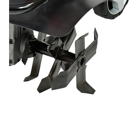 Esta ferramenta está equipada com um interruptor de segurança de 2 pontos que desliga as lâminas do cultivador, logo que você deixar de pressionar o interruptor. A pega ergonómica providencia uma operação confortável e pode ser dobrada para que não ocupe muito espaço de armazenamento. Um clip de alívio de cabo protege o cabo de alimentação do desgaste.