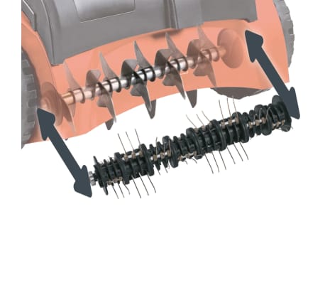 Com 42 garras e rolamentos de esferas, o rolo e o poderoso motor de velocidade inversa de 1200 Watt erradicam ervas daninhas e musgo, raizes e ramos. Devido ao seu ajuste de profundidade de trabalho, em três etapas, o aparelho pode ser ajustada às necessidades do solo e da vegetação. Um modo stand-by adicional protege as ferramentas,assim como o solo. As rodas extensas facilitam o trabalho em terrenos difíceis e diminuem o estresse no seu relvado. O saco coletor tem um volume de 28 litros.