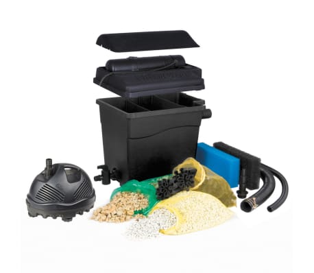 Este conjunto de filtro de lagoas FiltraClear 8000 Plus da Ubbink com uma capacidade de 25 L, garante uma excelente filtragem do seu lago de tamanho médio. O filtro pode ser colocado perto da margem.