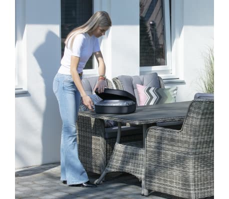 Feita em poliéster forte à prova de rasgões e resistente aos raios UV, esta capa também protege eficazmente contra o pó e descoloração. A cobertura de mobiliário de jardim não ocupará muito espaço quando não estiver a ser utilizada e protegerá o seu conjunto de móveis de exterior ao longo dos anos contra o desgaste causado pelas condições externas.