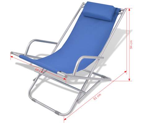 • vidaXL Cadeiras de jardim reclináveis 2 pcs aço azul[9/9]