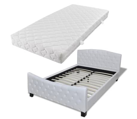 vidaXL Cama de casal com colchão em couro artificial branco 180x200 cm