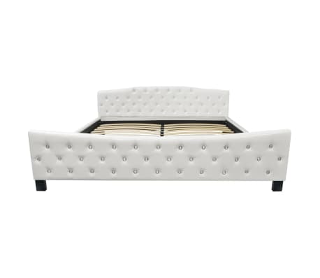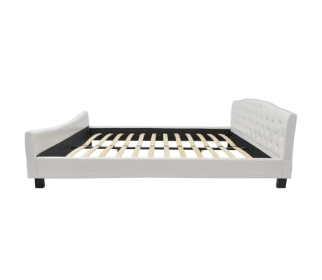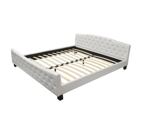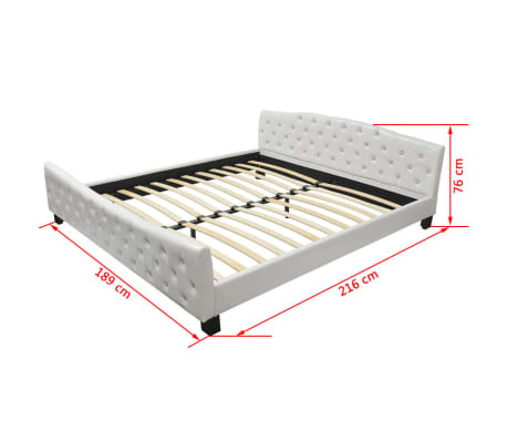 O acabamento do couro artificial é fácil de limpar e resistente à água. A estrutura de ripas desta cama consiste em lâminas de álamo de alta qualidade. A cabeceira da cama é acolchoada com espuma e forma um suporte de costas confortável para que se possa inclinar enquanto lê ou simplesmente relaxa. Dezenas de botões em cristal acrílico brilham até com o mínimo de luz.