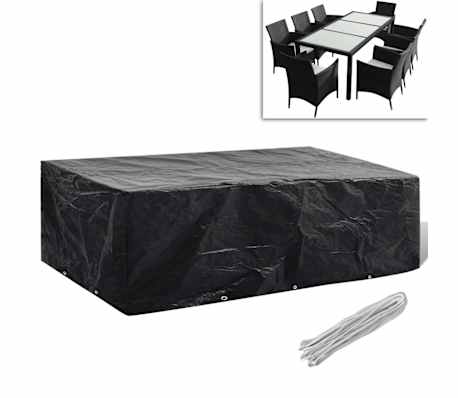 Esta capa para mobiliário de jardim, de alta qualidade, é adequada para proteger os seus conjuntos de vime da sujidade, vento, chuva e raios UV, durante todo o ano.