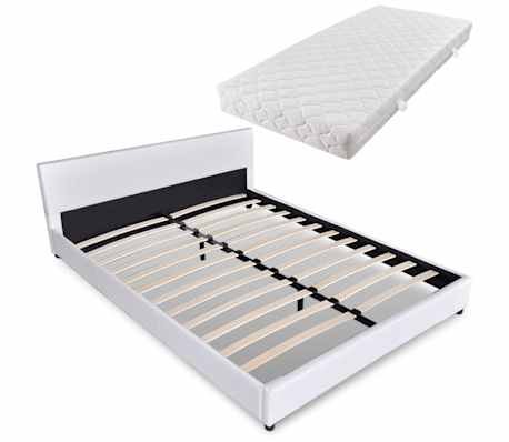 vidaXL Cama com colchão 180 x 200 cm couro artificial branco