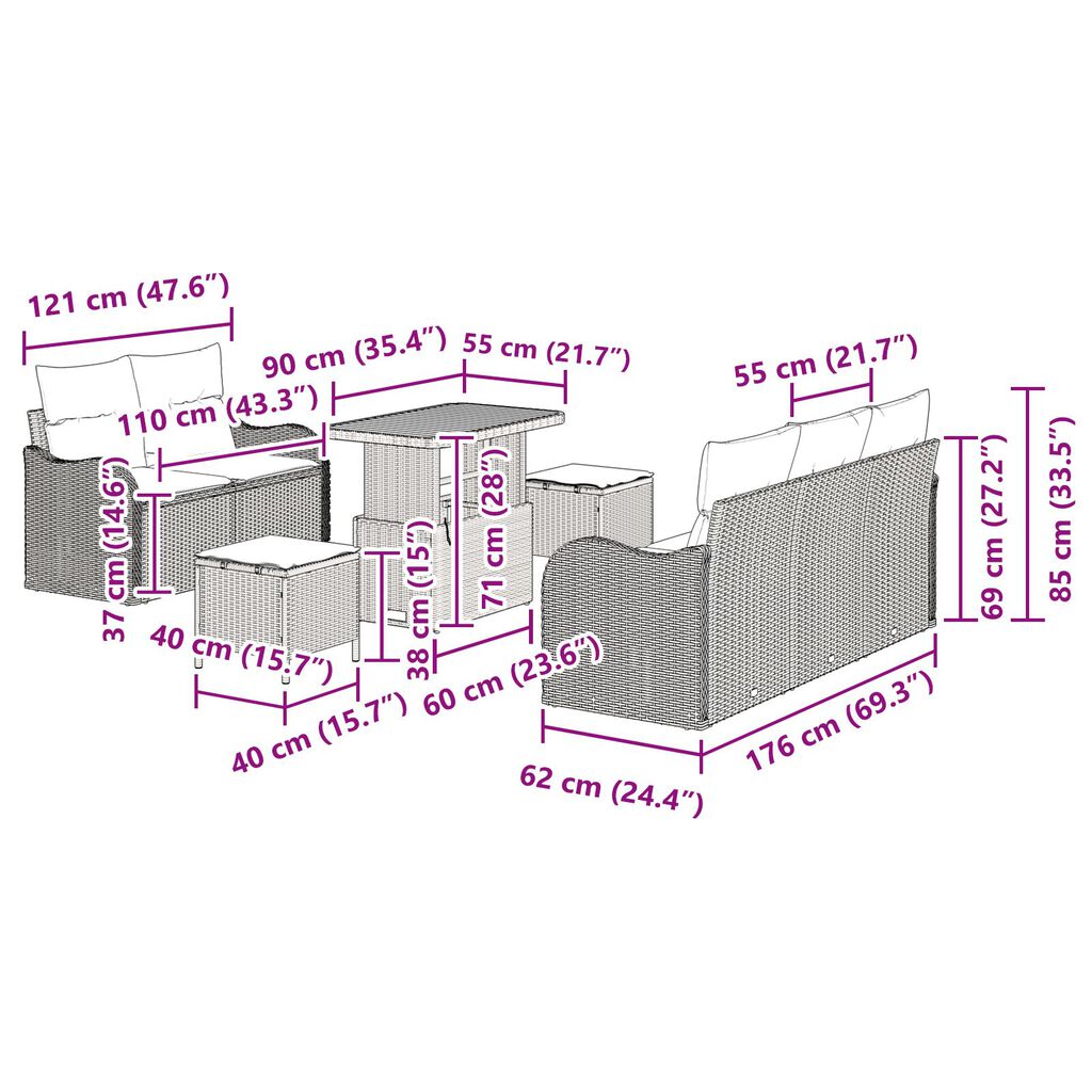 vidaXL Conjunto de Sofá de Jardim com almofada 8 pcs Preto vime PE
