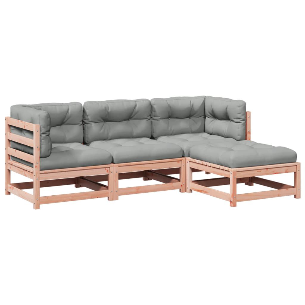 vidaXL 4 pcs conj. sofás jardim c/ almofadões madeira abeto-de-douglas