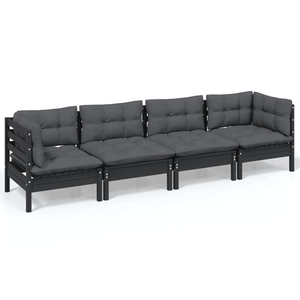 vidaXL 4 pcs conjunto lounge jardim c/ almofadões pinho maciço