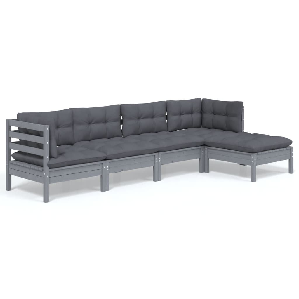 vidaXL 5 pcs conjunto lounge de jardim c/ almofadões pinho cinza