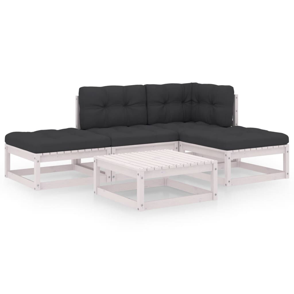 vidaXL 5 pcs conjunto lounge de jardim c/ almofadões pinho maciço