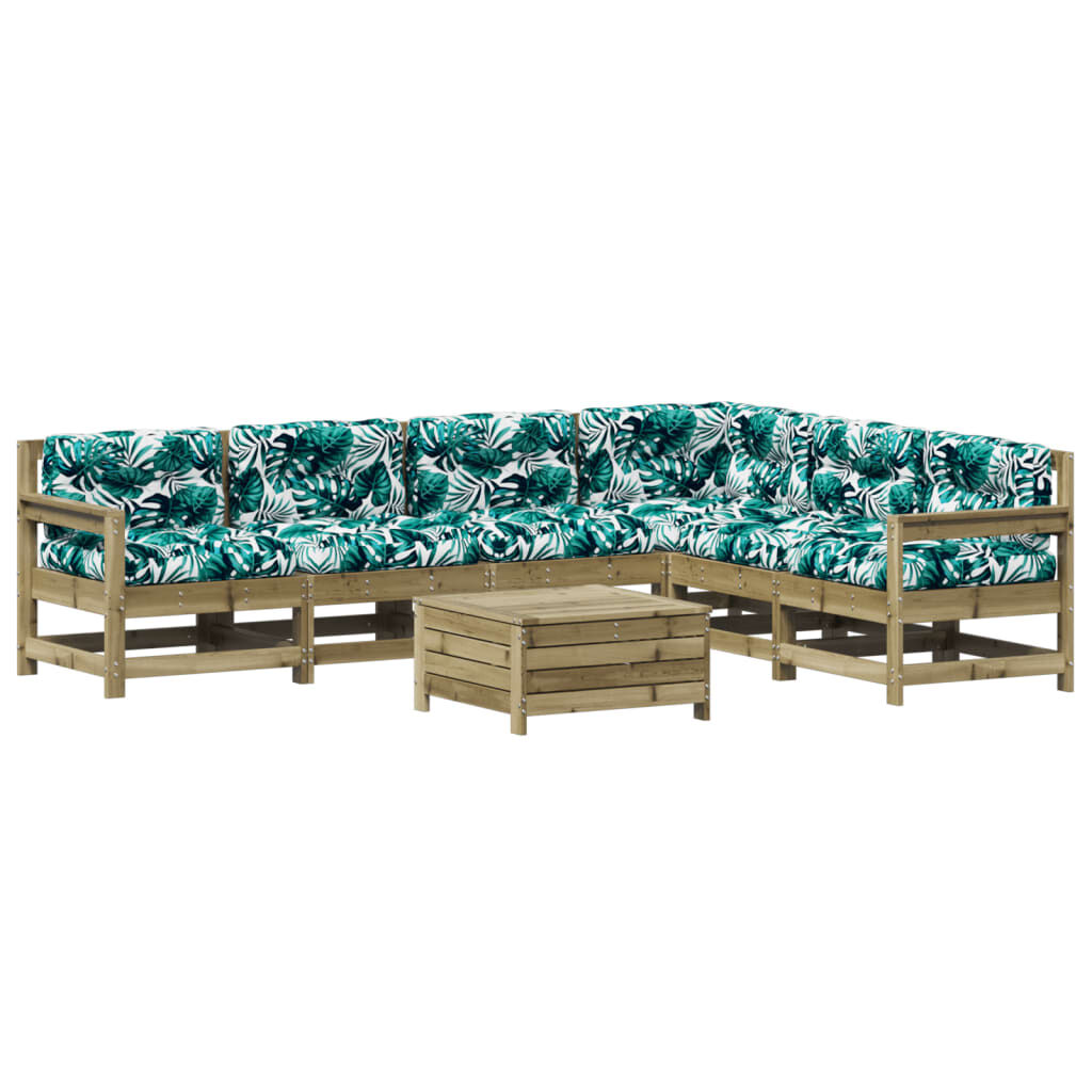 vidaXL 7 pcs conjunto lounge de jardim c/ almofadões pinho impregnado