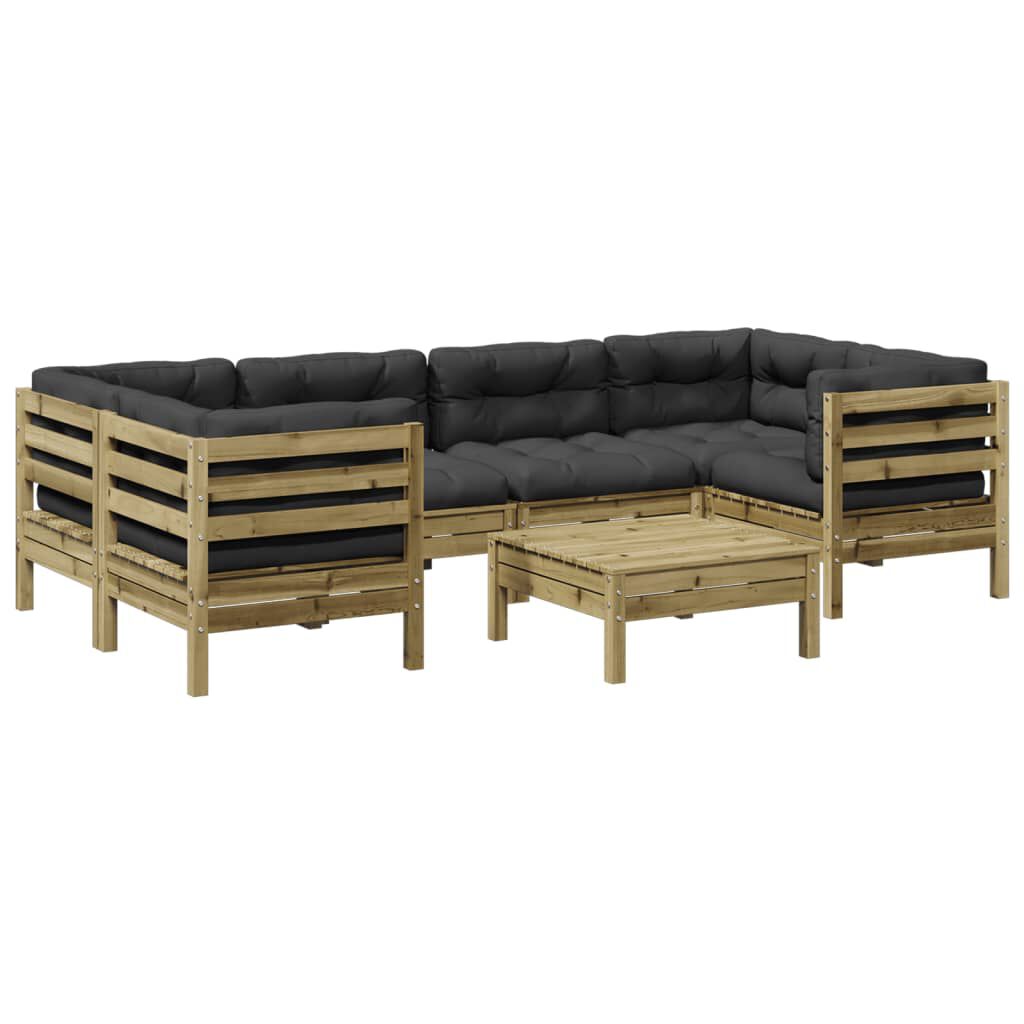 vidaXL 7 pcs conjunto sofás de jardim c/ almofadões pinho impregnado