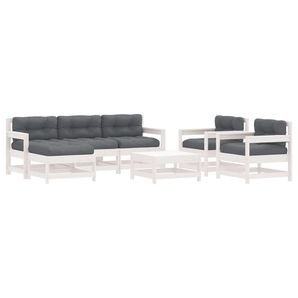 vidaXL 7pcs conjunto lounge jardim c/ almofadões madeira maciça branco