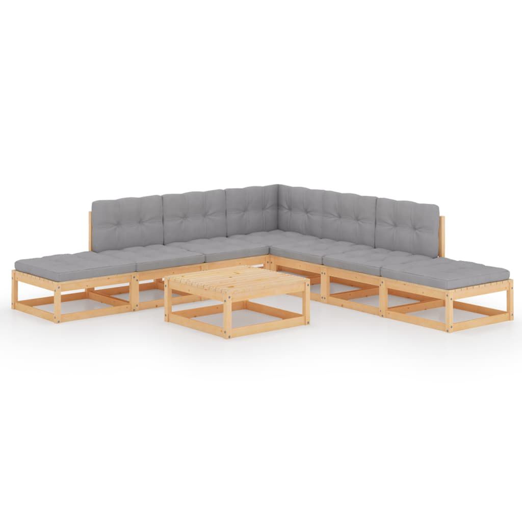 vidaXL 8 pcs conjunto lounge de jardim com almofadões pinho maciço