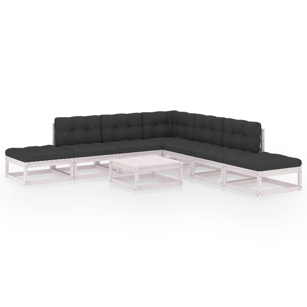 vidaXL 8 pcs conjunto lounge de jardim com almofadões pinho maciço