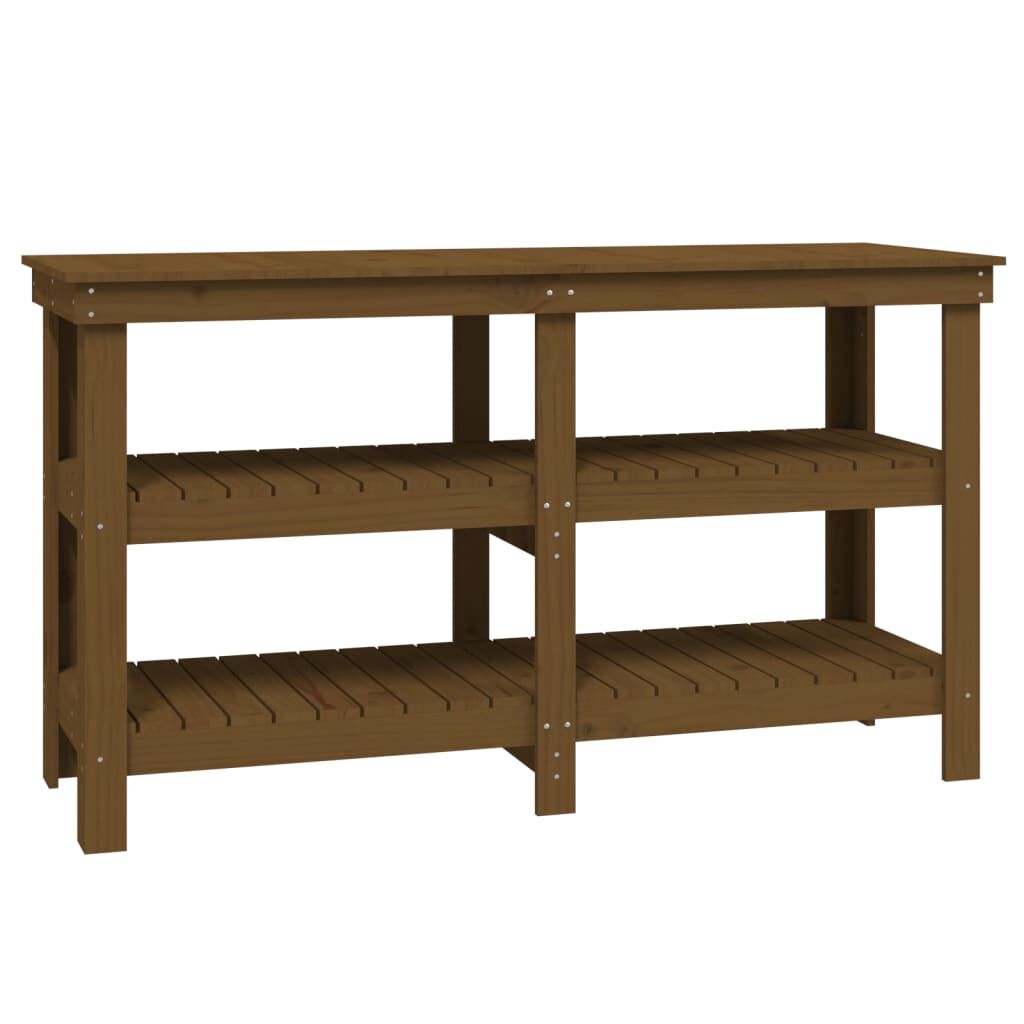 vidaXL Bancada de trabalho 142,5x50x80 cm pinho maciço castanho mel