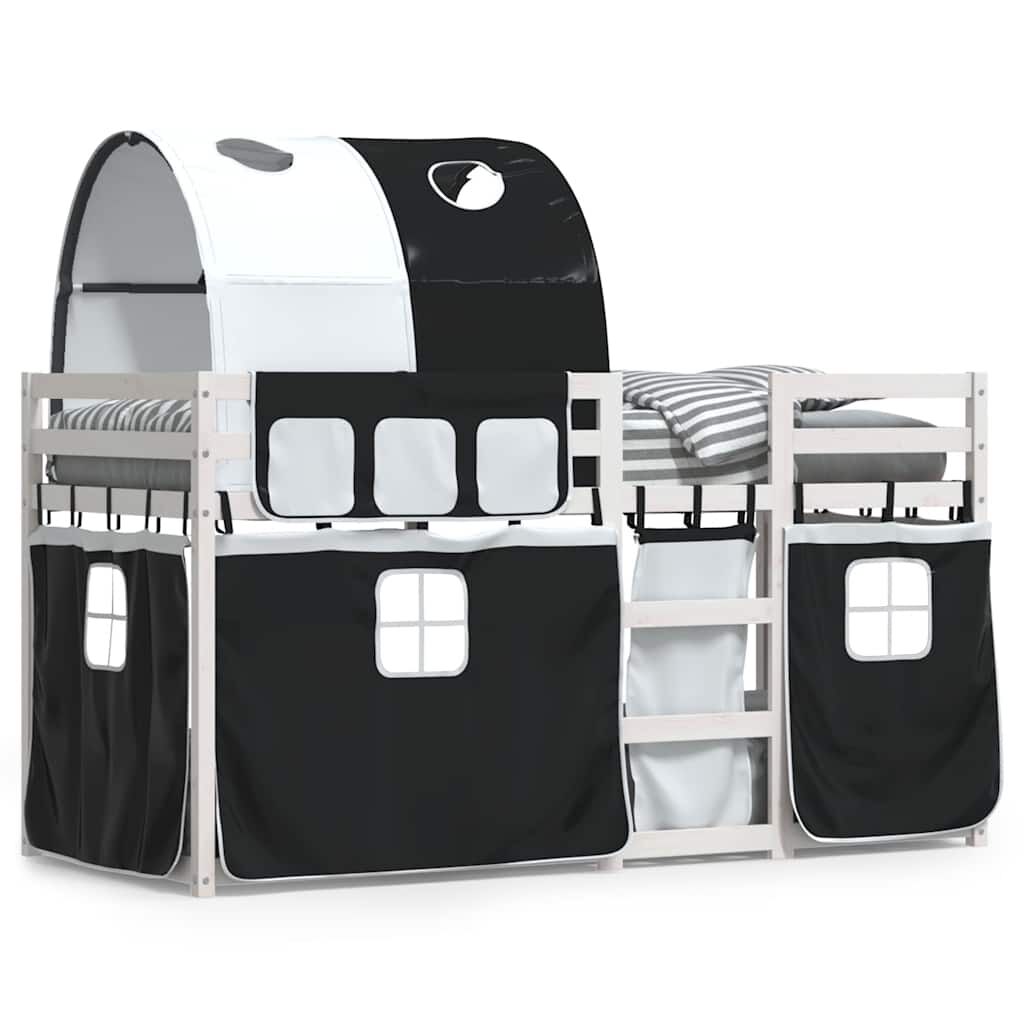 vidaXL Beliche com cortinas 90x190 cm pinho maciço branco e preto