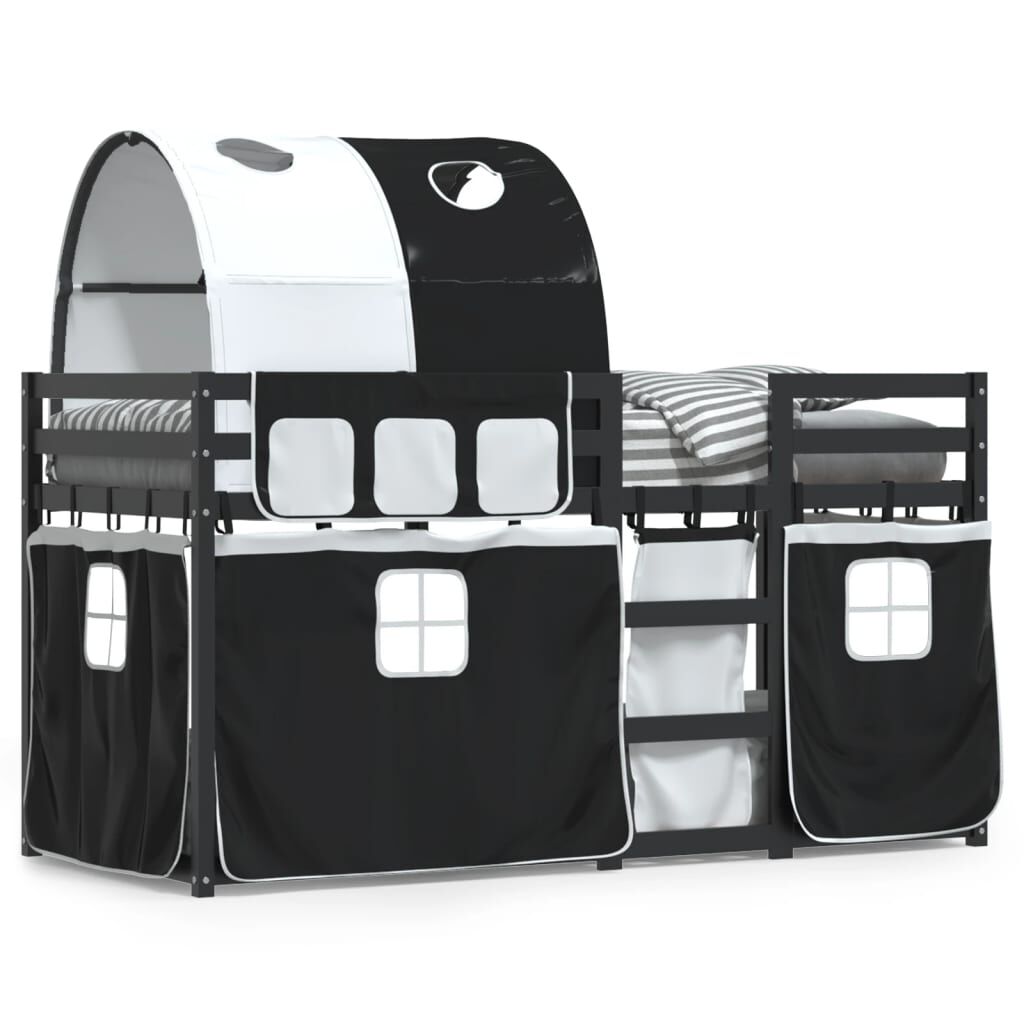vidaXL Beliche com cortinas 90x200 cm pinho maciço branco e preto
