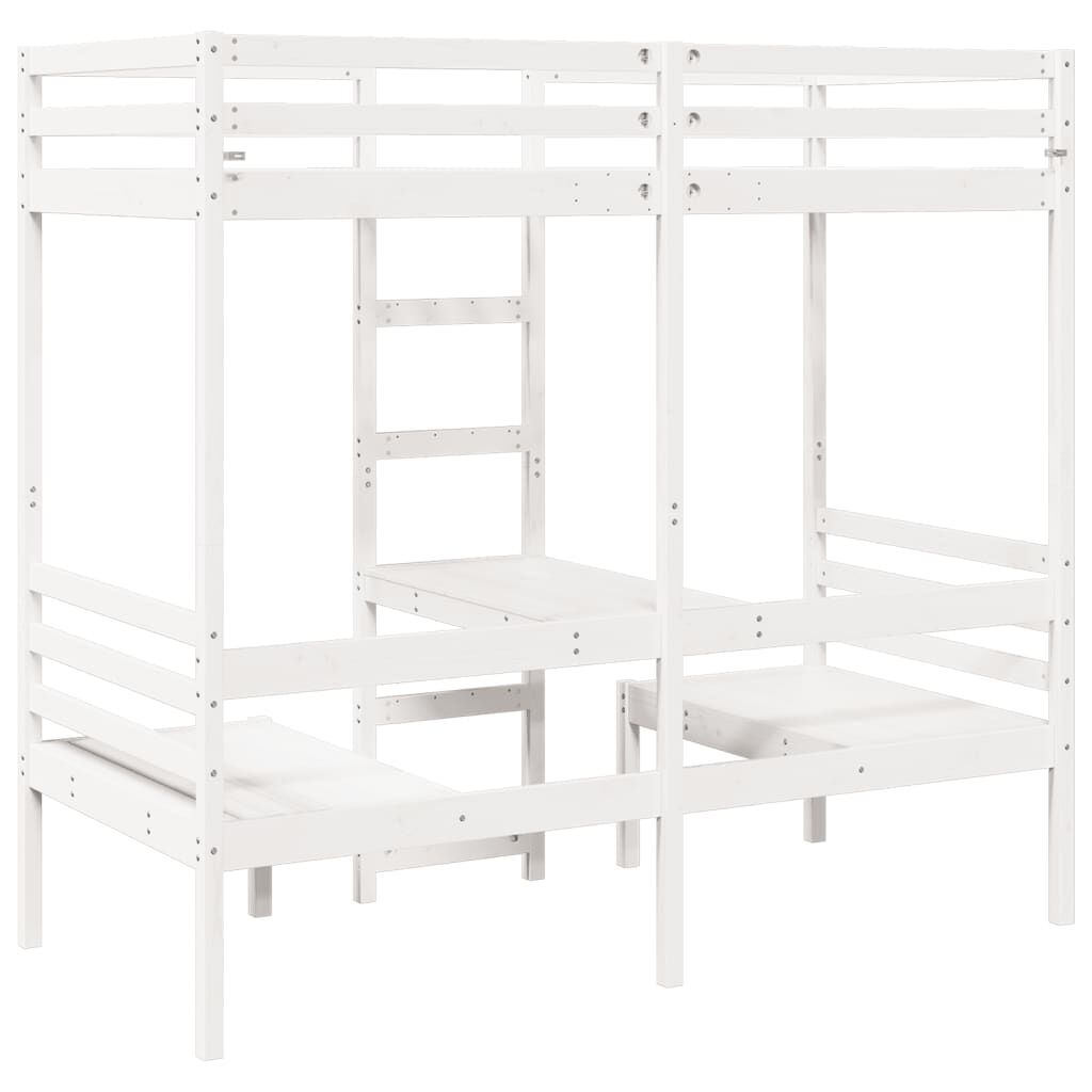vidaXL Cama alta c/ secretária/cadeiras 90x200 cm pinho maciço branco