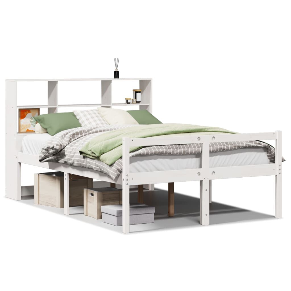 vidaXL Cama com estante sem colchão 120x200 cm pinho maciço branco