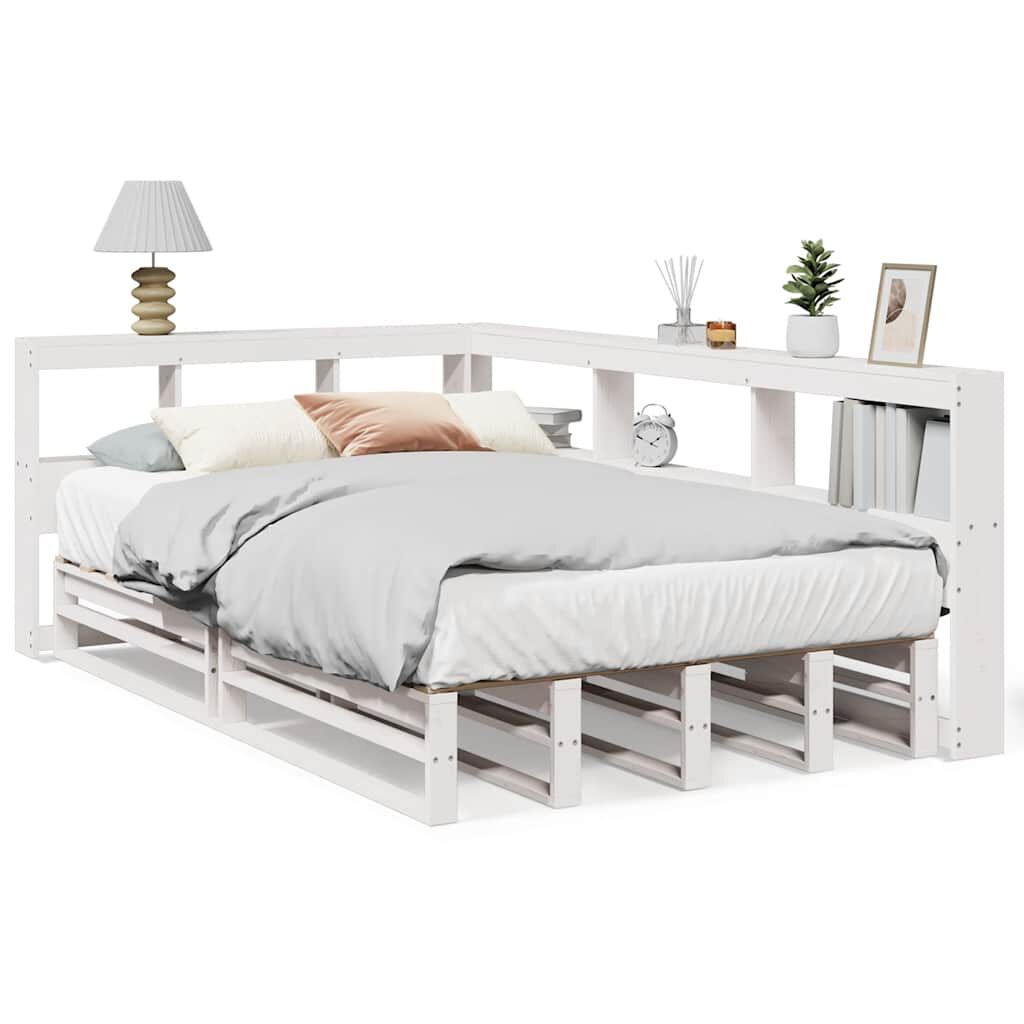 vidaXL Cama com estante sem colchão 120x200 cm pinho maciço branco