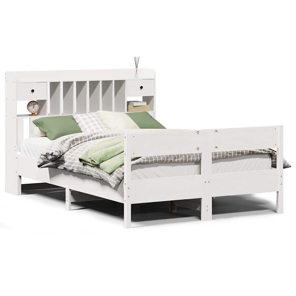 vidaXL Cama com estante sem colchão 140x200 cm pinho maciço branco