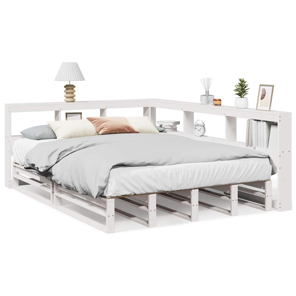vidaXL Cama com estante sem colchão 160x200 cm pinho maciço branco