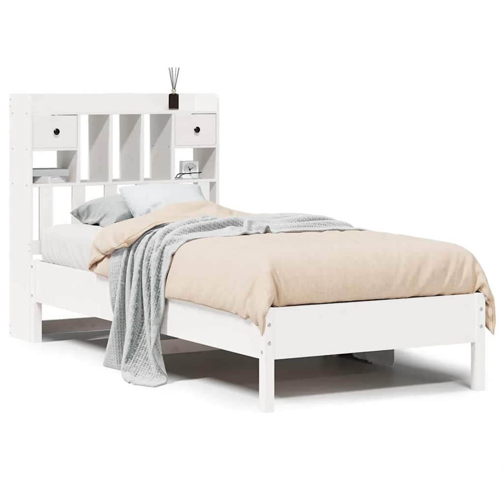 vidaXL Cama com estante sem colchão 75x190 cm pinho maciço branco