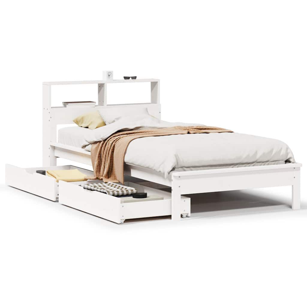 vidaXL Cama com estante sem colchão 90x190 cm pinho maciço branco