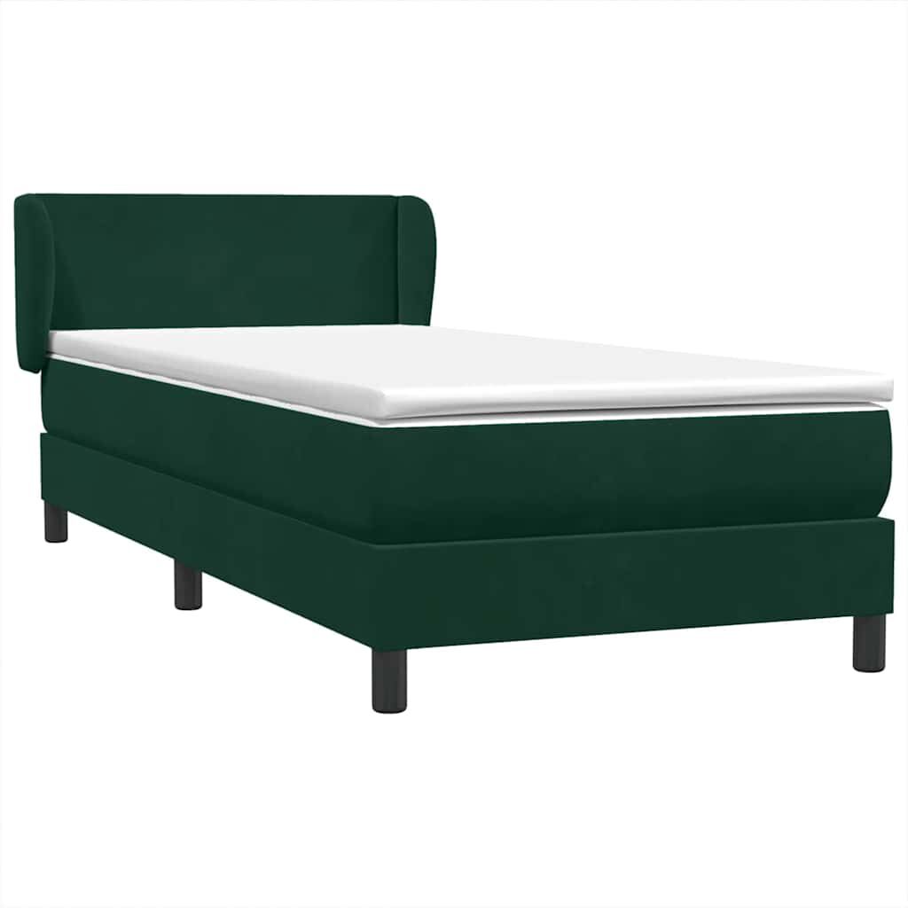 vidaXL Cama com molas/colchão 90x220 cm veludo verde-escuro
