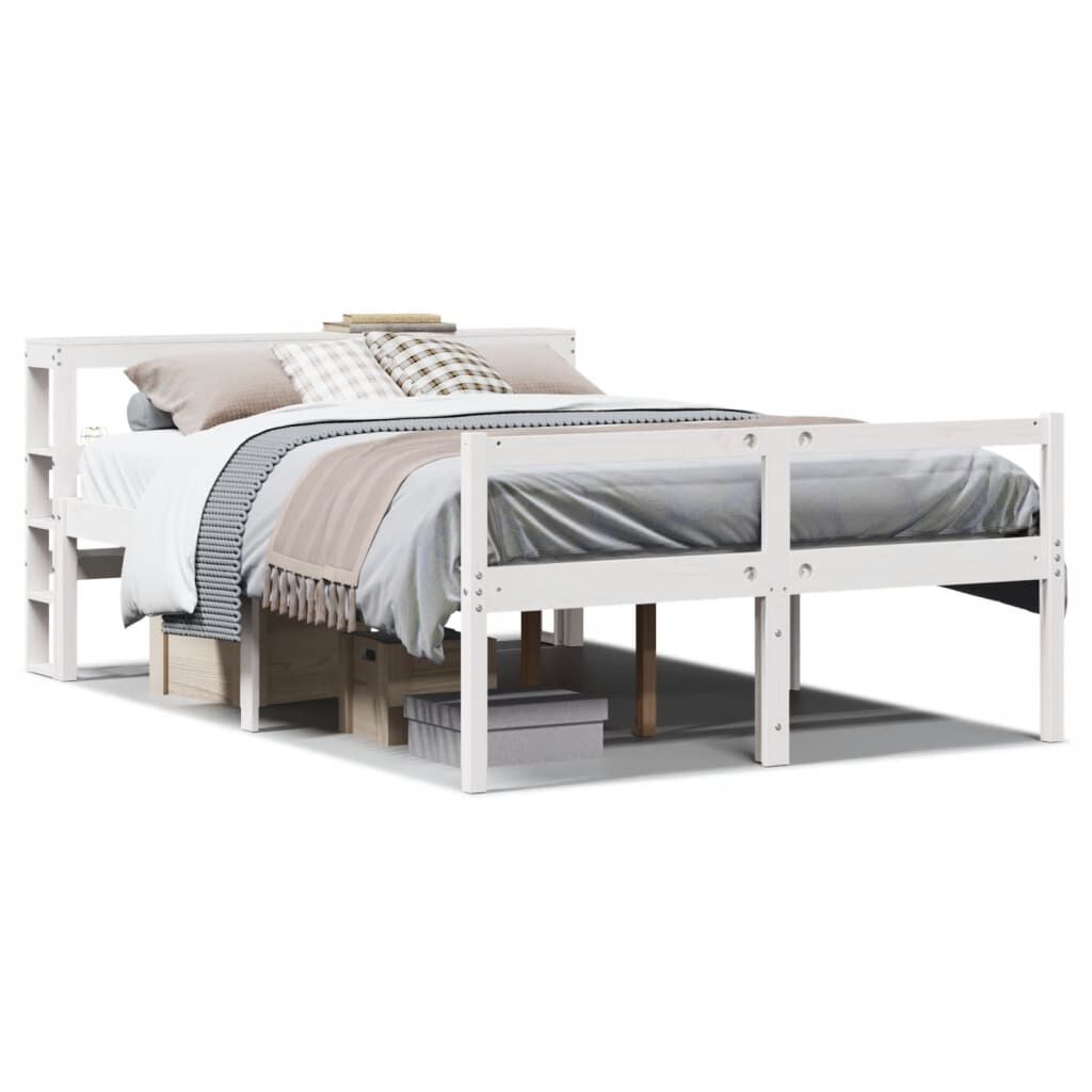 vidaXL Cama para idosos com cabeceira 150x200 cm pinho maciço branco