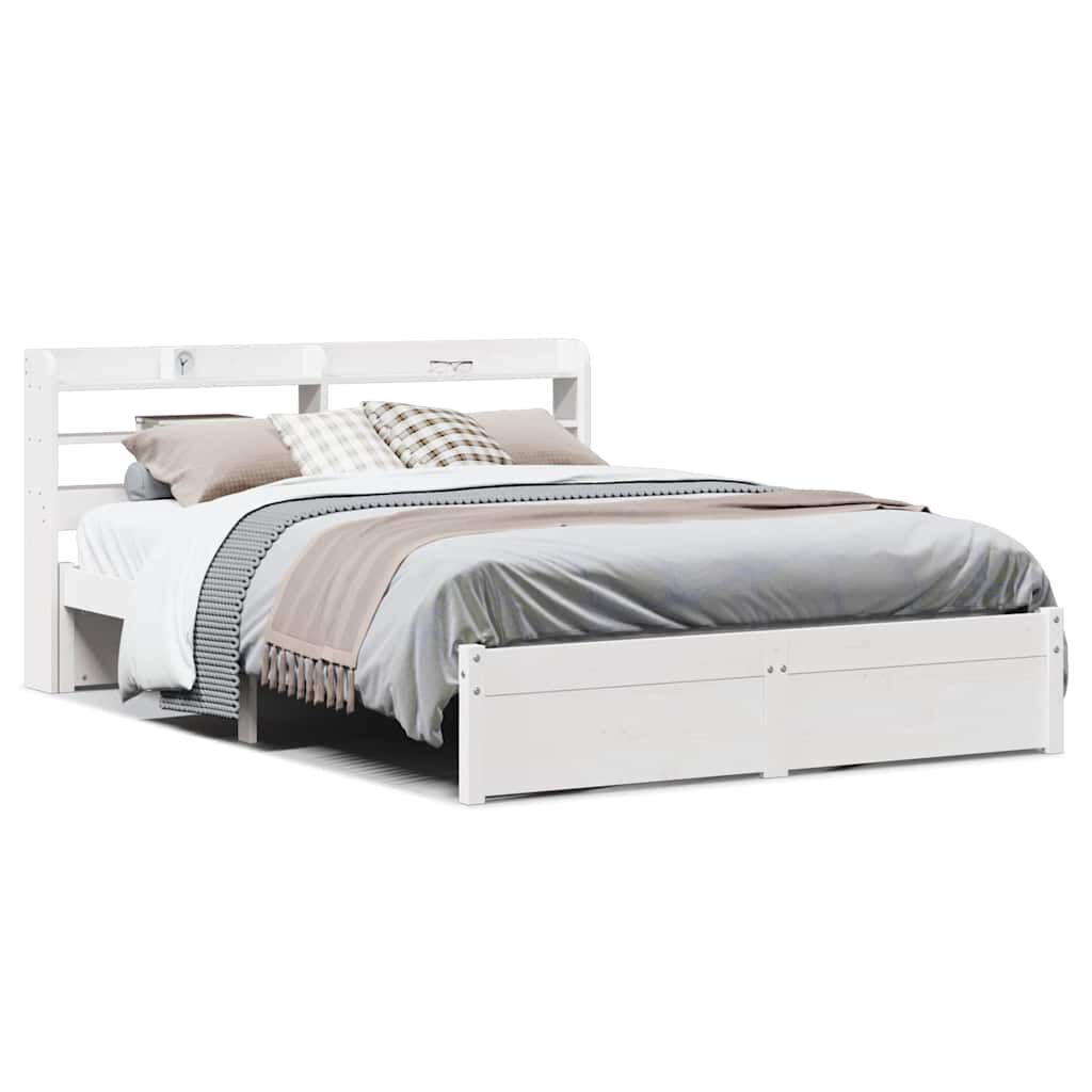 vidaXL Estrutura cama c/ cabeceira 135x190 cm pinho maciço branco