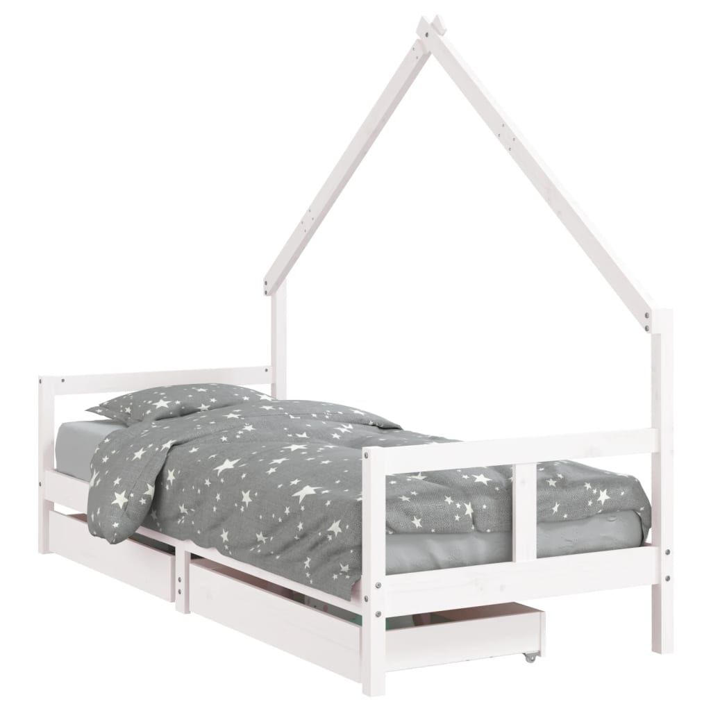 vidaXL Estrutura cama infantil c/ gavetas 80x200cm pinho maciço branco