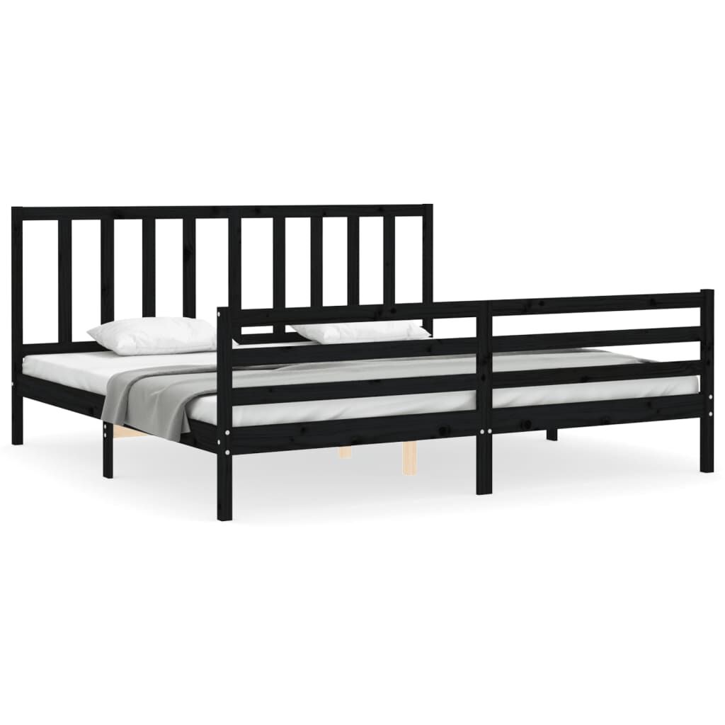 vidaXL Estrutura de cama com cabeceira 200x200 cm madeira maciça preto