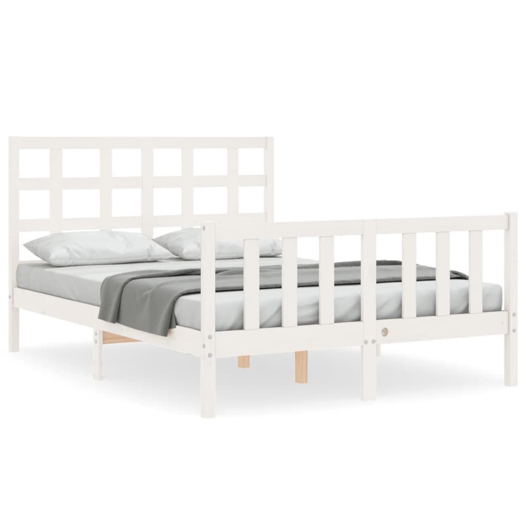 vidaXL Estrutura de cama de casal c/ cabeceira madeira maciça branco