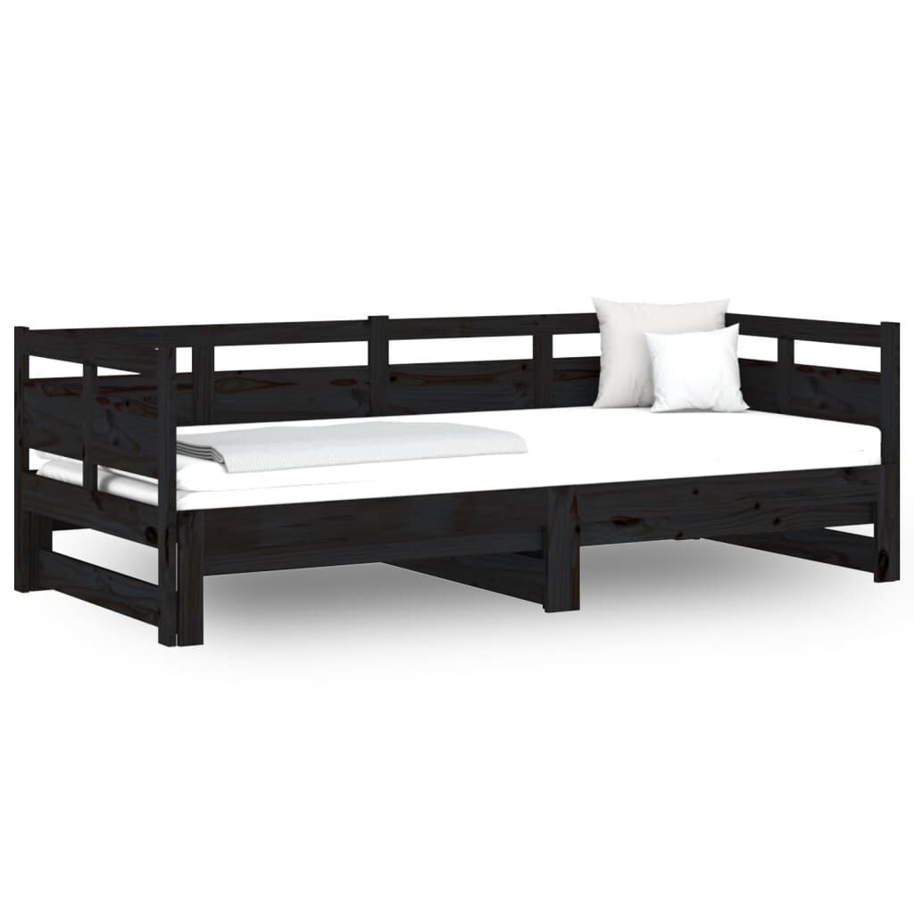 vidaXL Estrutura sofá-cama de puxar pinho maciço preto 2x(90x190) cm