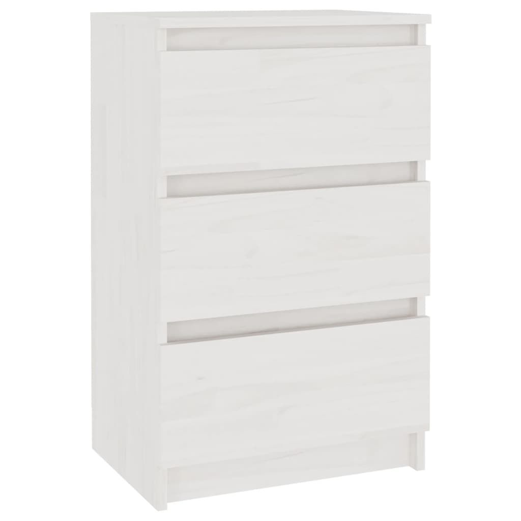 A mesa de cabeceira é feita em madeira de pinho maciça, assegurando a sua robustez e durabilidade. Três gavetas fornecem um amplo espaço de arrumação para manter os seus artigos pequenos bem organizados e ao alcance. Esta mesa de cabeceira é fácil de limpar com um pano húmido.