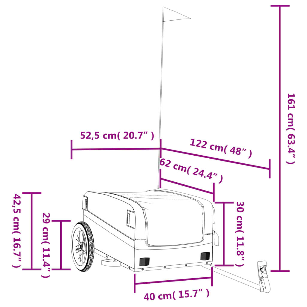 • Material robusto: o ferro é um material forte e duro. É sem dúvida um dos materiais preferidos na construção industrial e de mobiliário. Feito de ferro, este reboque de carga para bicicleta é muito resistente e durável.