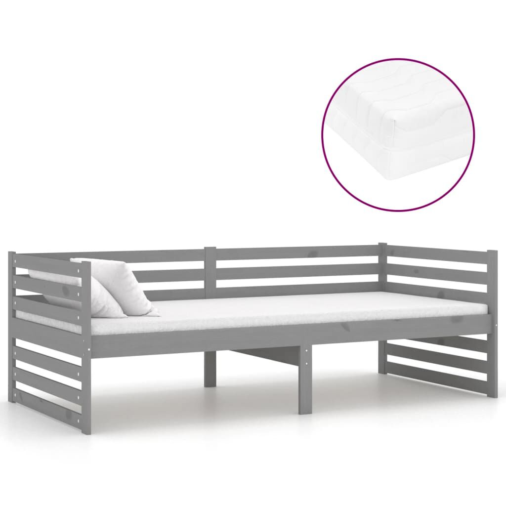 vidaXL Sofá-cama com colchão 90x200 cm pinho maciço cinzento