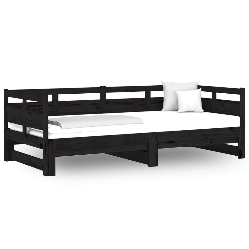 vidaXL Sofá-cama de puxar pinho maciço preto 2x(80x200) cm