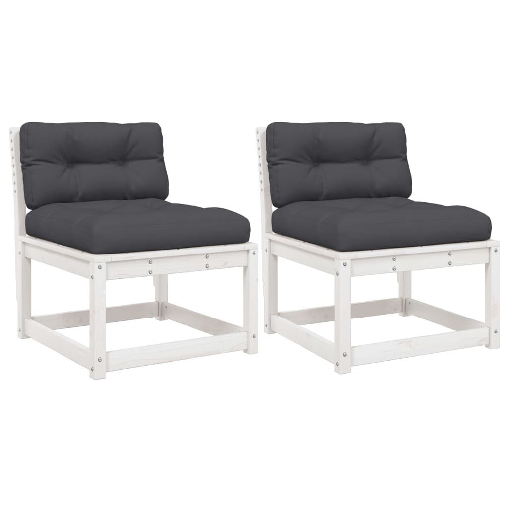 vidaXL Sofás de jardim c/ almofadões 2 pcs pinho maciço branco