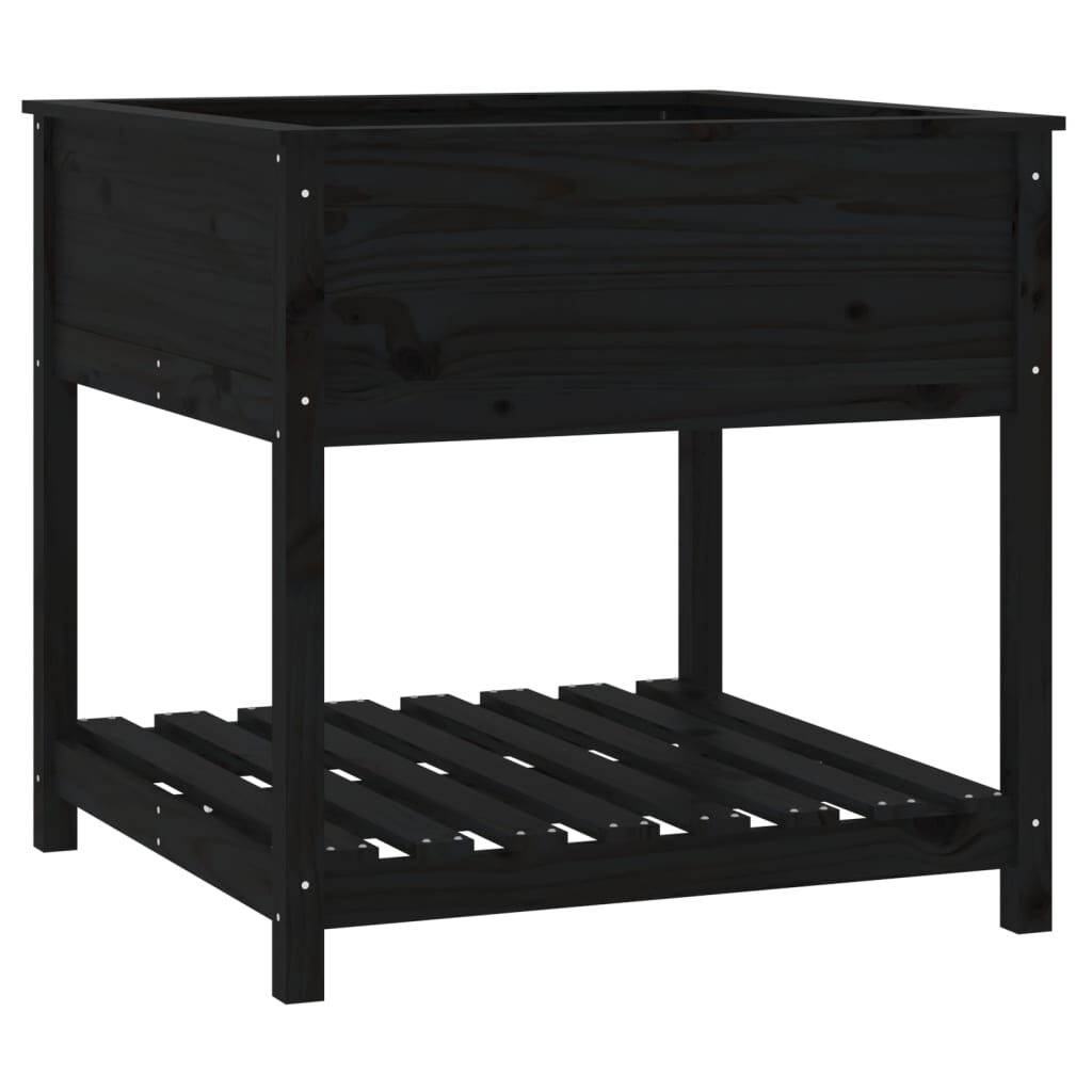 vidaXL Vaso/floreira com prateleira 82,5x82,5x81 cm pinho maciço preto