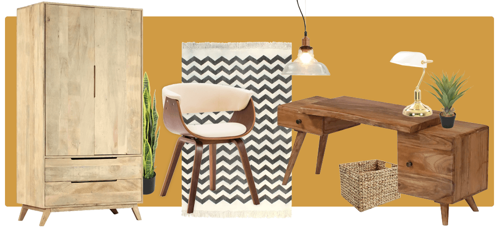 Uma coisa que não pode faltar num interior retro são as formas curvilíneas e os móveis e acessórios de linhas suaves. Os móveis retro também podem ser reconhecidos pelas suas pernas cónicas e pelo uso de madeira. Tanto pode ser madeira escura como clara, podendo ser usadas na mesma divisão. Os materiais adequados ao estilo de design retro são a madeira, vime, plástico, cortiça, juta, lã e veludo.