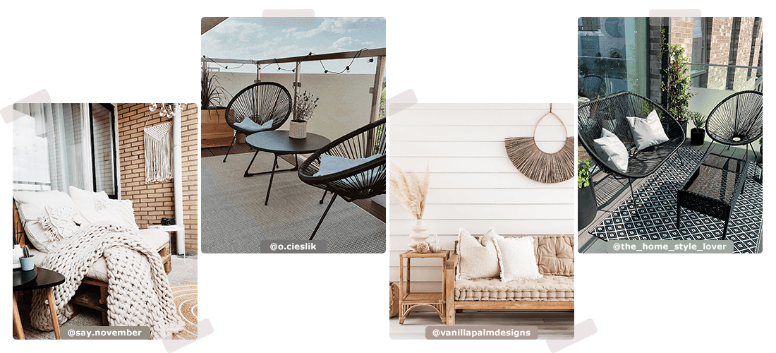 Inspirar-se nas últimas tendências de varandas pequenas pode ser um ótimo lugar de partida. Independentemente do tipo de assento que escolher, recomendamos que pense primeiro no seu conforto. Como mencionado anteriormente, as almofadas são elementos essenciais que podem ser o ingrediente chave para o seu conforto.